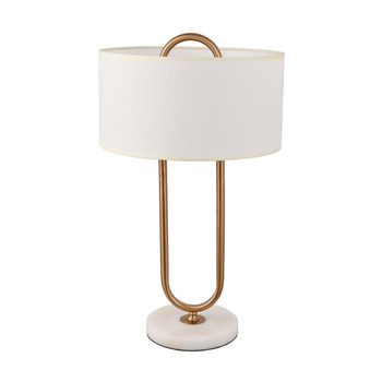 तांबे की प्लेटेड धातु और संगमरमर का आधार टेबल लैंप, सफेद लिनन लैंप छाया सिरेमिक टेबल लैंप बेस