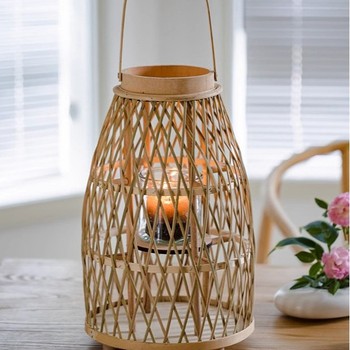 Doğal bambu el sanatları mumluk, bambu tavan lambası, yatak odası için bambu abajur, mutfak, oturma odası, yemek masası