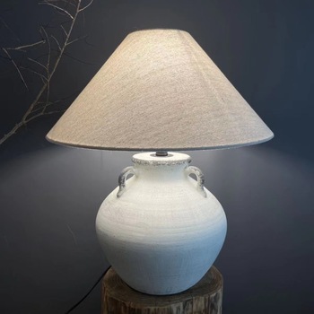 Keten gölge ile sıcak, eko-bilinçli aydınlatma seramik masa lambası için keten gölge ile Vintage ilham seramik lamba